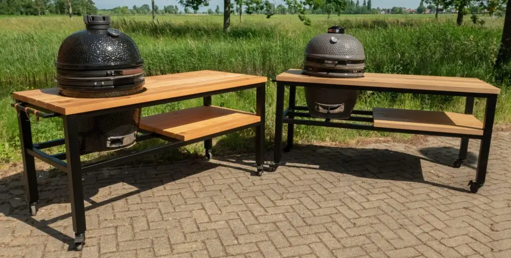 Met een kamado tafel op maat van Tafelbroeders haal je kwaliteit en gebruiksgemak naar je buitenkeuken. Onze tafels combineren een stoer ontwerp met praktische indeling, speciaal voor jouw kamado BBQ.